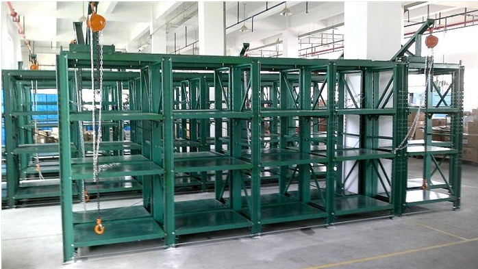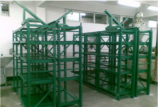 三格四層標準抽屜式模具架;規格;高H2000*深D615*長L3100MM 每(měi)格長888 1、每塊(kuài)抽(chōu)屜板可承重800-1000KG 2、天車(行車)承重800-1000KG 3、抽(chōu)屜板可拉出65% 4、安全可靠附加(jiā)保險裝置 5、操作輕便采用軸承組合,滑動平衡並附獨立(lì)吊模裝置(zhì) 6、節省場地,占地麵積積為1.8平方米,可存放幾十套中小型模具 7、結構簡單(dān),由多種組合部件組裝而成,便於拆卸、運輸和組裝