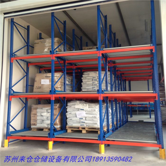 工作原理 重力式貨架又叫輥道式貨架,屬於倉儲貨架中的(de)托盤類存儲貨架。重力式貨架是(shì)橫梁(liáng)式貨架衍生品之一(yī),貨(huò)架結構與橫梁式貨架相似,隻(zhī)是在橫梁上安上(shàng)滾筒式軌道,軌道呈3-5°傾斜。托(tuō)盤貨物用叉車(chē)搬運至(zhì)貨架(jià)進(jìn)貨口,利(lì)用自重,托盤(pán)從進口自動滑行至另一端的取貨口(kǒu)。重力式貨架屬於先進先出的存儲方式。 貨架(jià)特點 1、貨(huò)物由高的一端存入,滑至低端,從低(dī)端取出。貨物滑(huá)動(dòng)過程中,滑道上設置有阻(zǔ)尼器,控製(zhì)貨物滑行速(sù)度保持在安全範圍內。滑道出貨一端設置有分離器(qì),搬運機(jī)械可順利取出(chū)第一板位置的貨物。 2、貨物遵循先進先出(chū)順序(xù)。貨架具有存儲密度高,且具有柔性配合功(gōng)能。 3、適用於以托盤為載(zǎi)體的存儲作業,貨物堆棧整齊,為大件重物(wù)的存儲提供了較好的解決方案,倉儲空間利用率在75%以上,而(ér)且隻需要一個進出貨通道; 4、重力式貨(huò)架非常(cháng)環保,全部采用無動(dòng)力形式,無能耗,噪音低,安(ān)全可靠,可滿負(fù)荷運作。 |